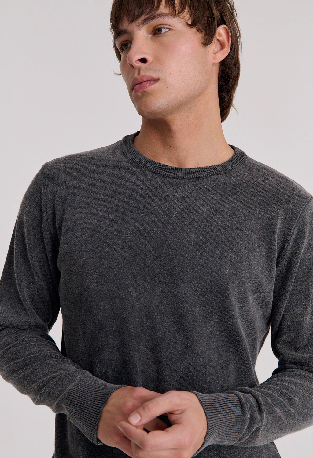 Sweater manga larga. De calce slim. Proceso acid wash generando un look gastado. 100% algodón.